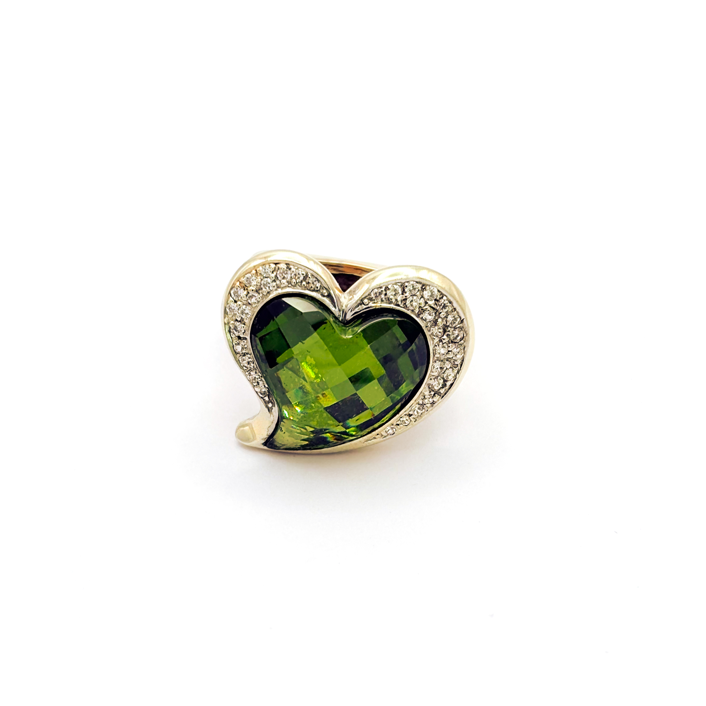 Aggiungi al carrello Anello cuore in argento 925 dorato con pietra naturale verde e zirconi – Giadan € 390,00