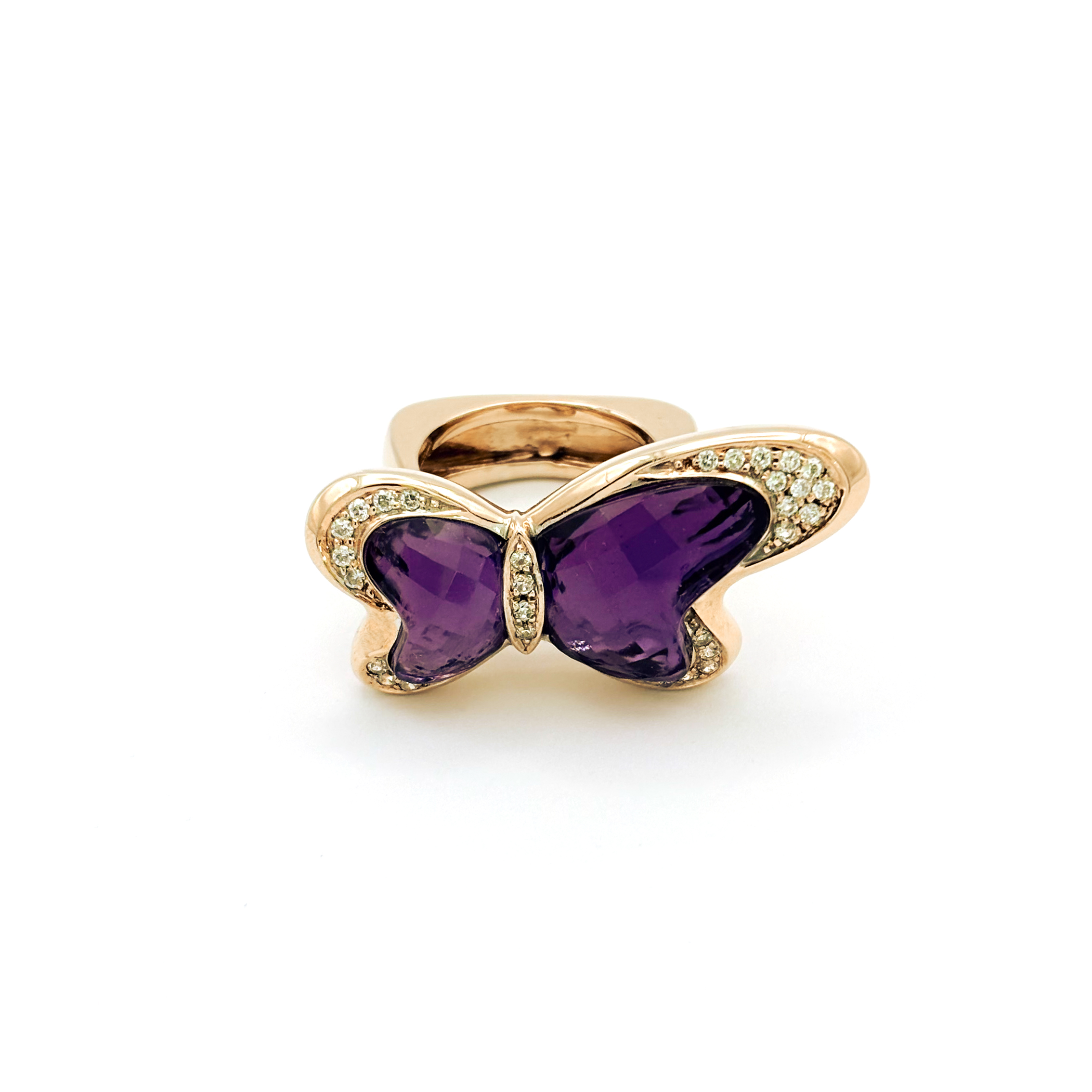 Aggiungi al carrello Anello farfalla in argento 925 rosato con pietra naturale viola e zirconi – Giadan € 390,00