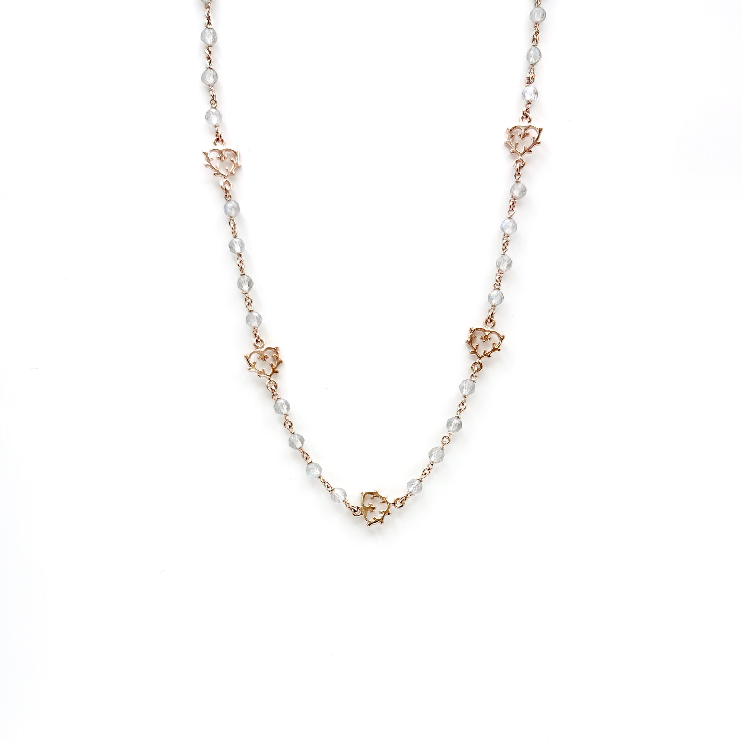 Aggiungi al carrello Collana “Rosario” in oro rosa 9 kt con cuori e labradorite grigia/azzurra – Laurent Gandini € 800,00