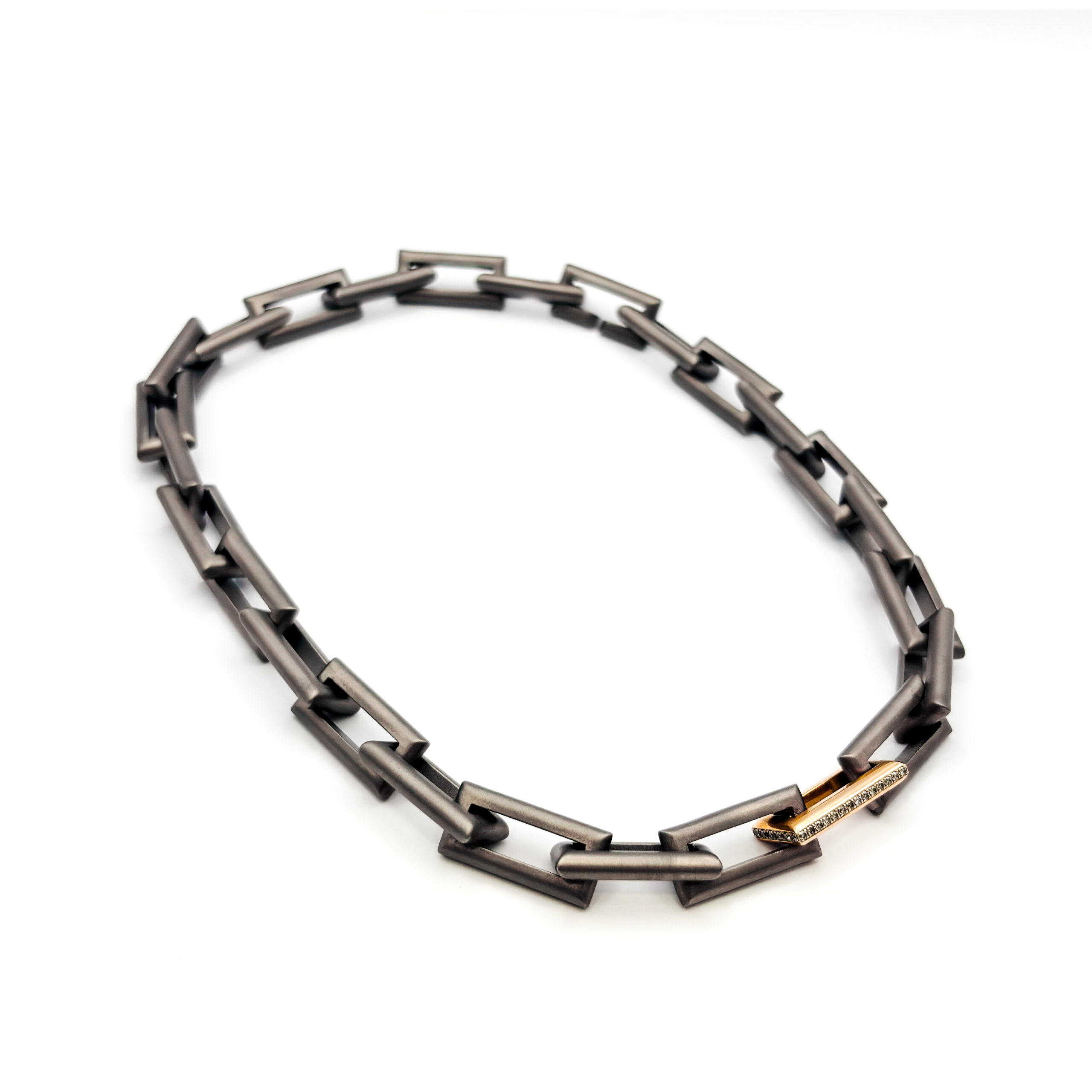 Aggiungi al carrello Collana maglia catena in titanio e oro 18 kt con diamanti brown 0,44 ct – Mano|J. € 2.978,00