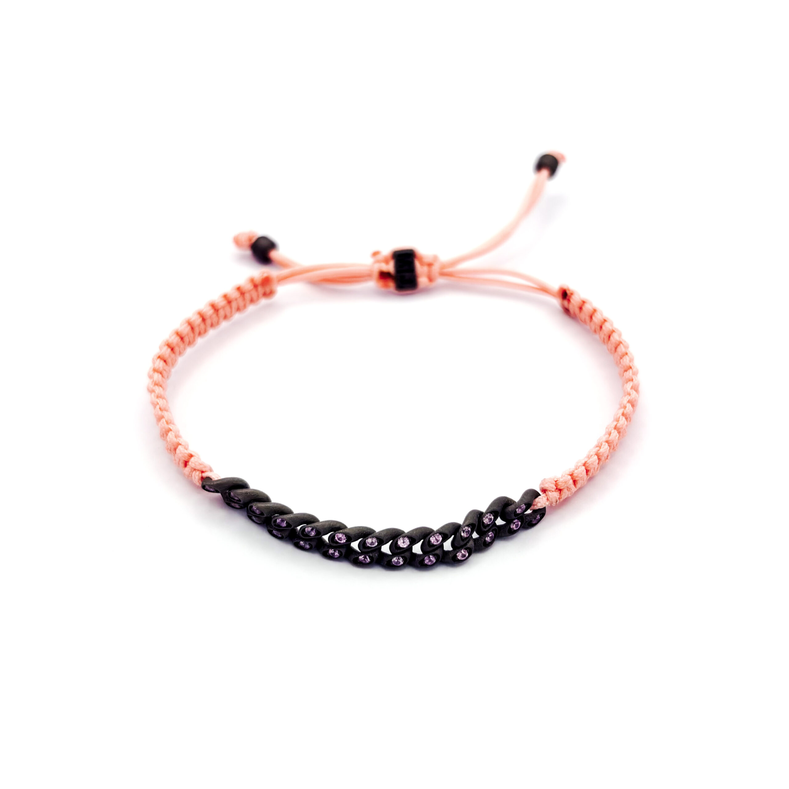 Aggiungi al carrello Bracciale groumette nautica mini in titanio con zaffiri rosa e laccio rosa intrecciato – Mano|J. € 325,00