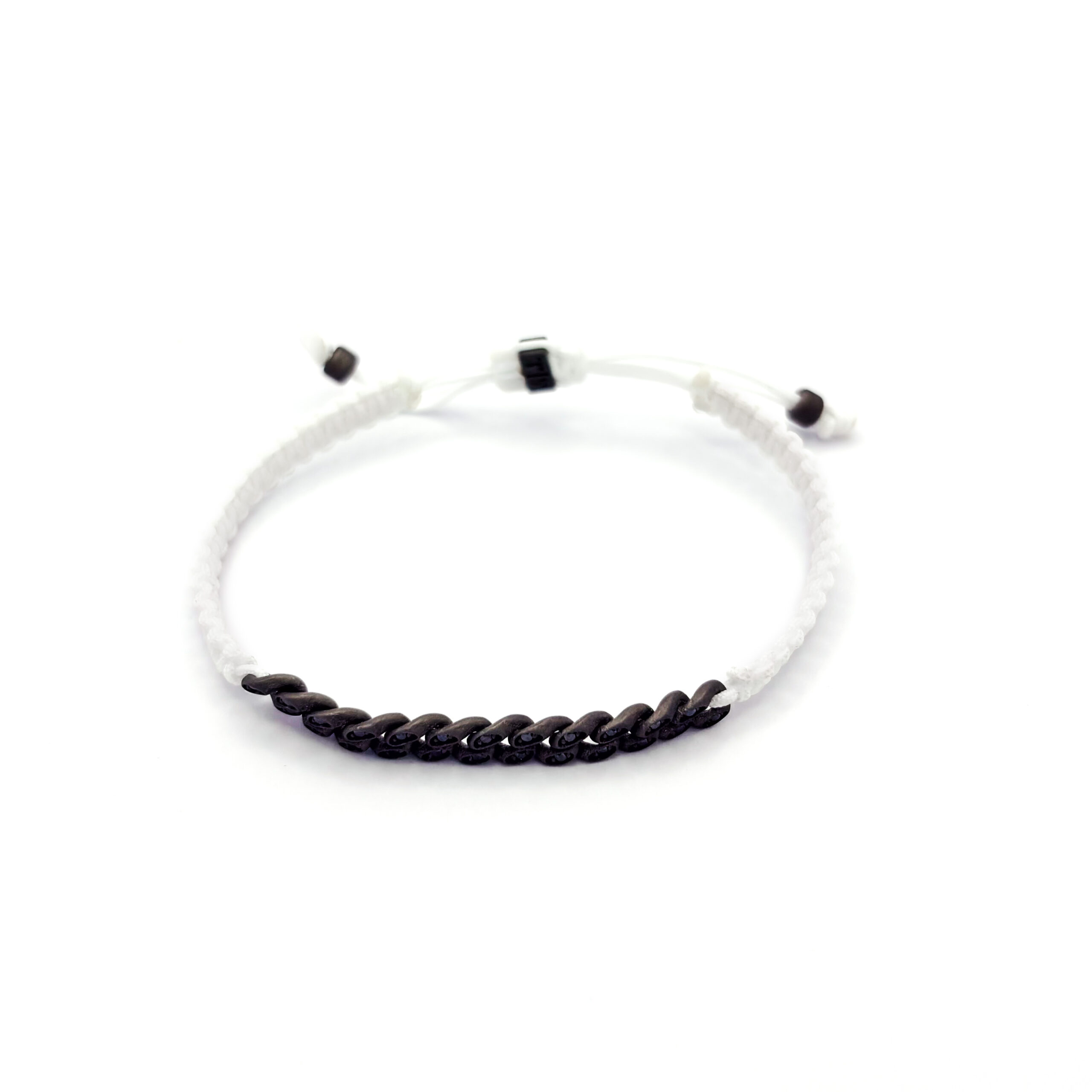 Aggiungi al carrello Bracciale groumette nautica mini in titanio con diamanti black 0,34 ct e laccio bianco intrecciato – Mano|J. € 340,00