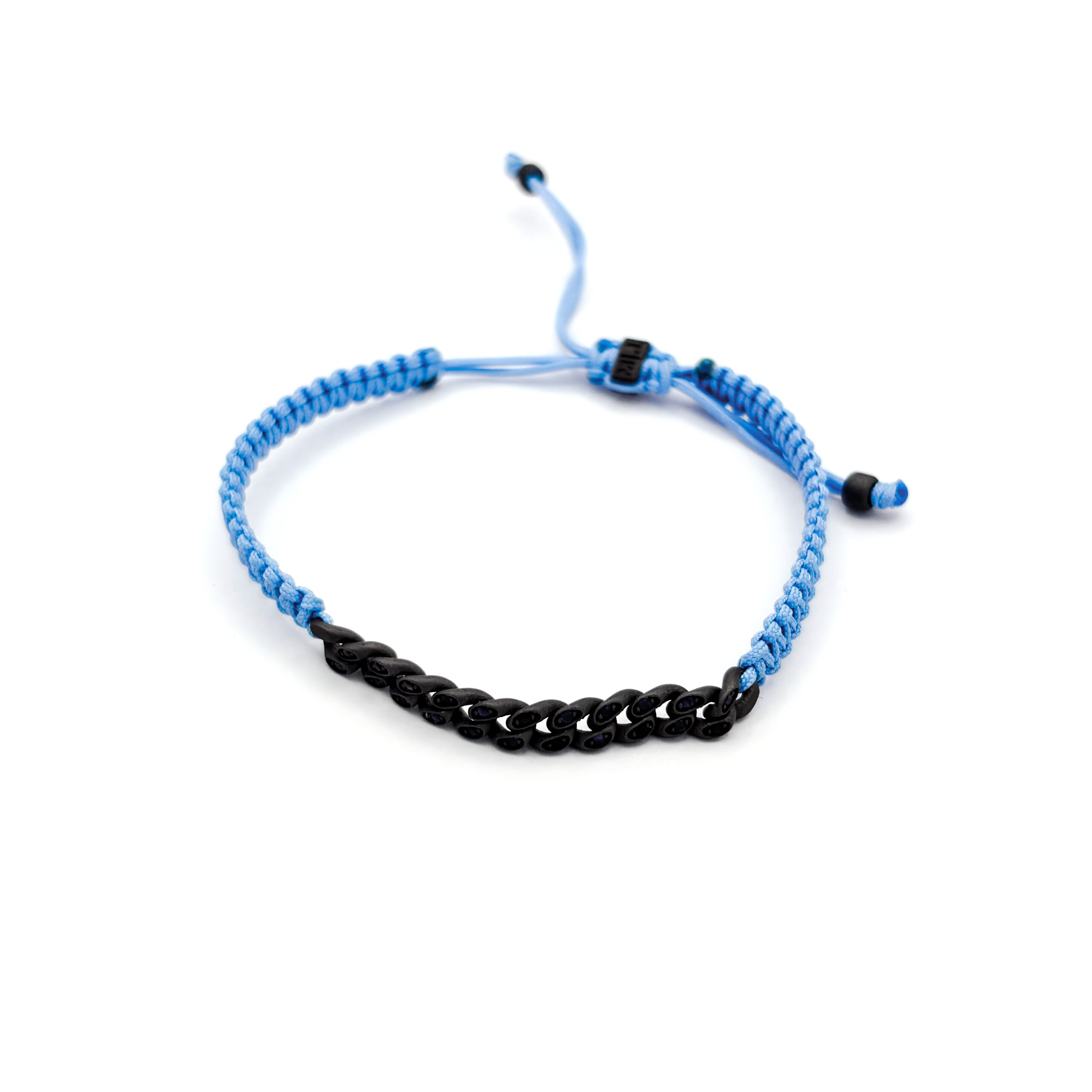Aggiungi al carrello Bracciale groumette nautica mini in titanio con zaffiri blu 0,34 ct e laccio azzurro intrecciato – Mano|J. € 325,00