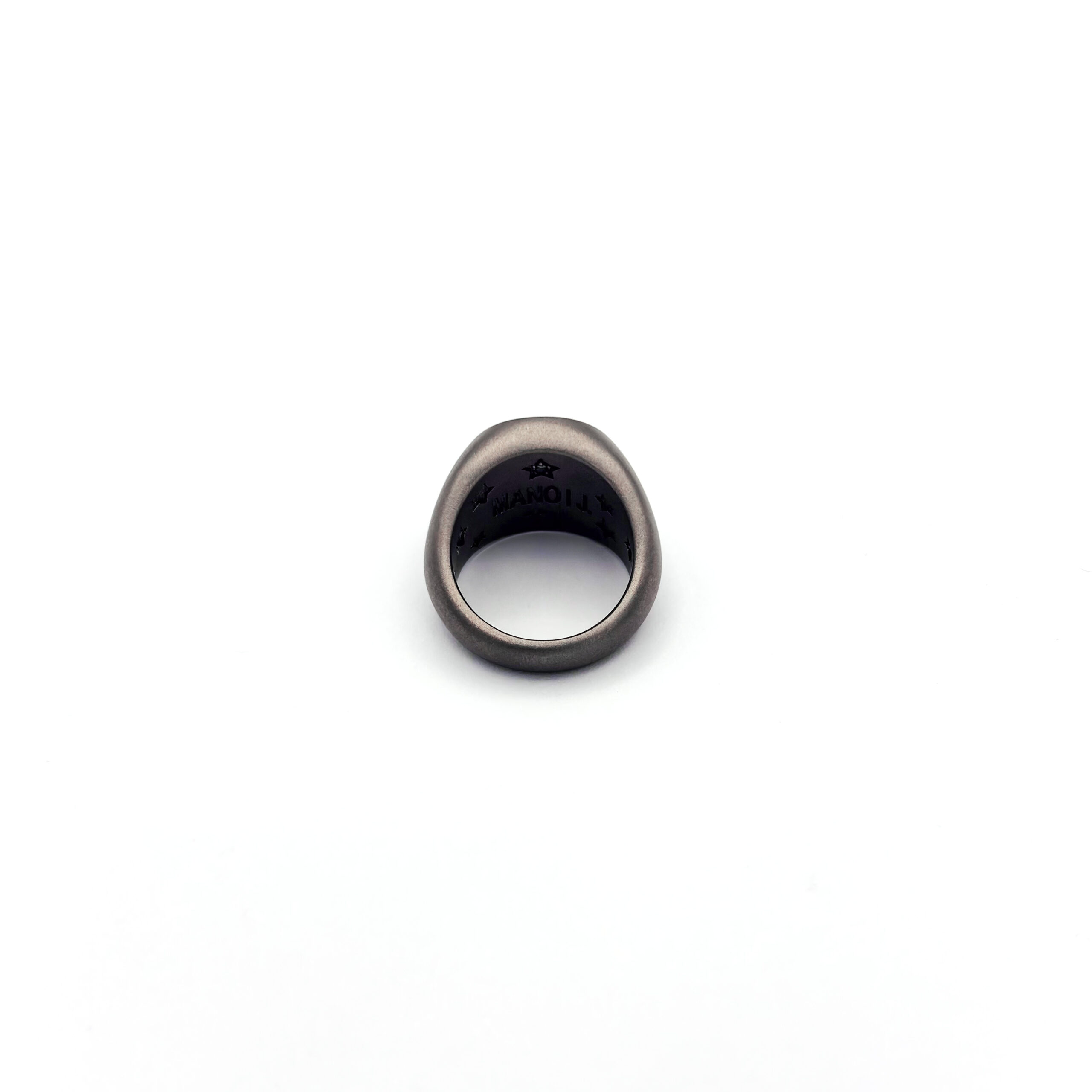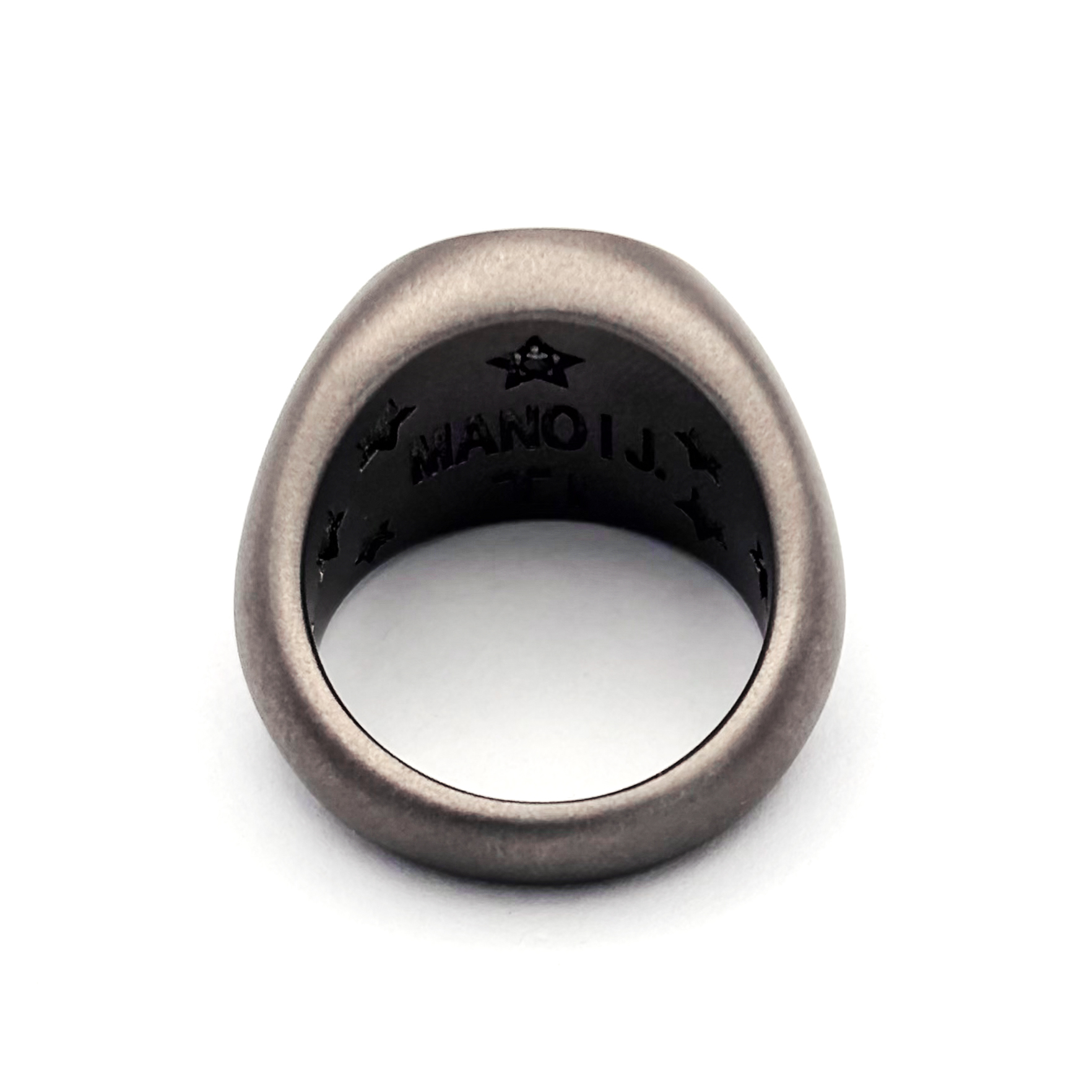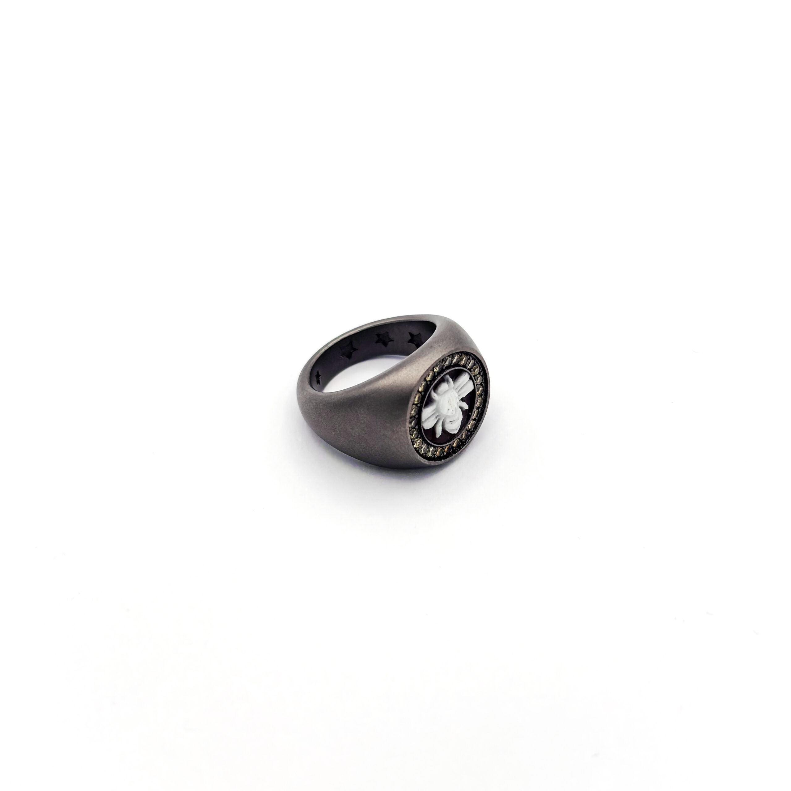 Anello chevalier “Nova” in titanio con cammeo ape e diamanti brown 0,34 ct – Mano|J.