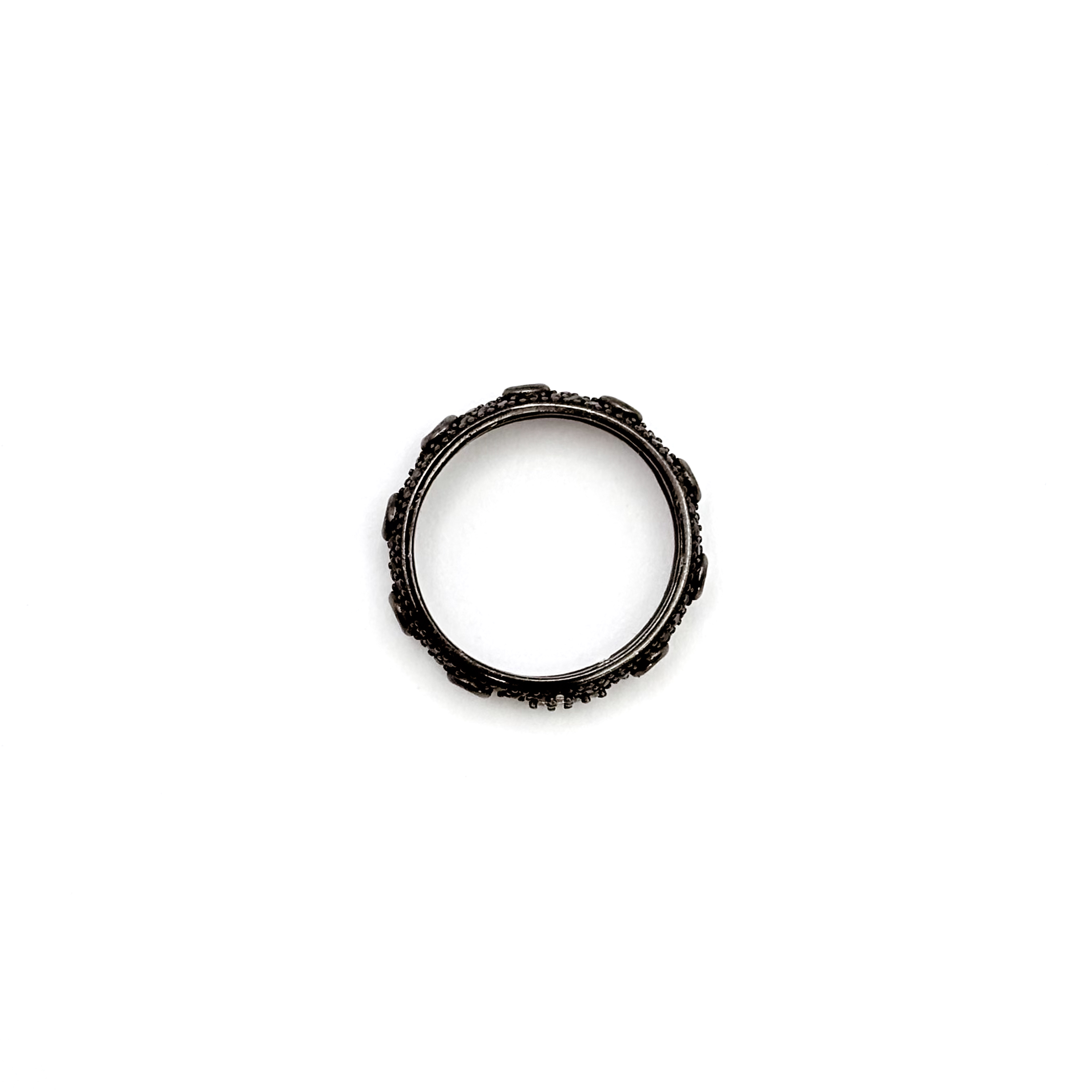 Il finish nero e la luce degli zirconi giocano su un’estetica urban-chic: un anello che parla di carattere, senza rinunciare alla raffinatezza. La croce centrale aggiunge un accento simbolico, essenziale e moderno.