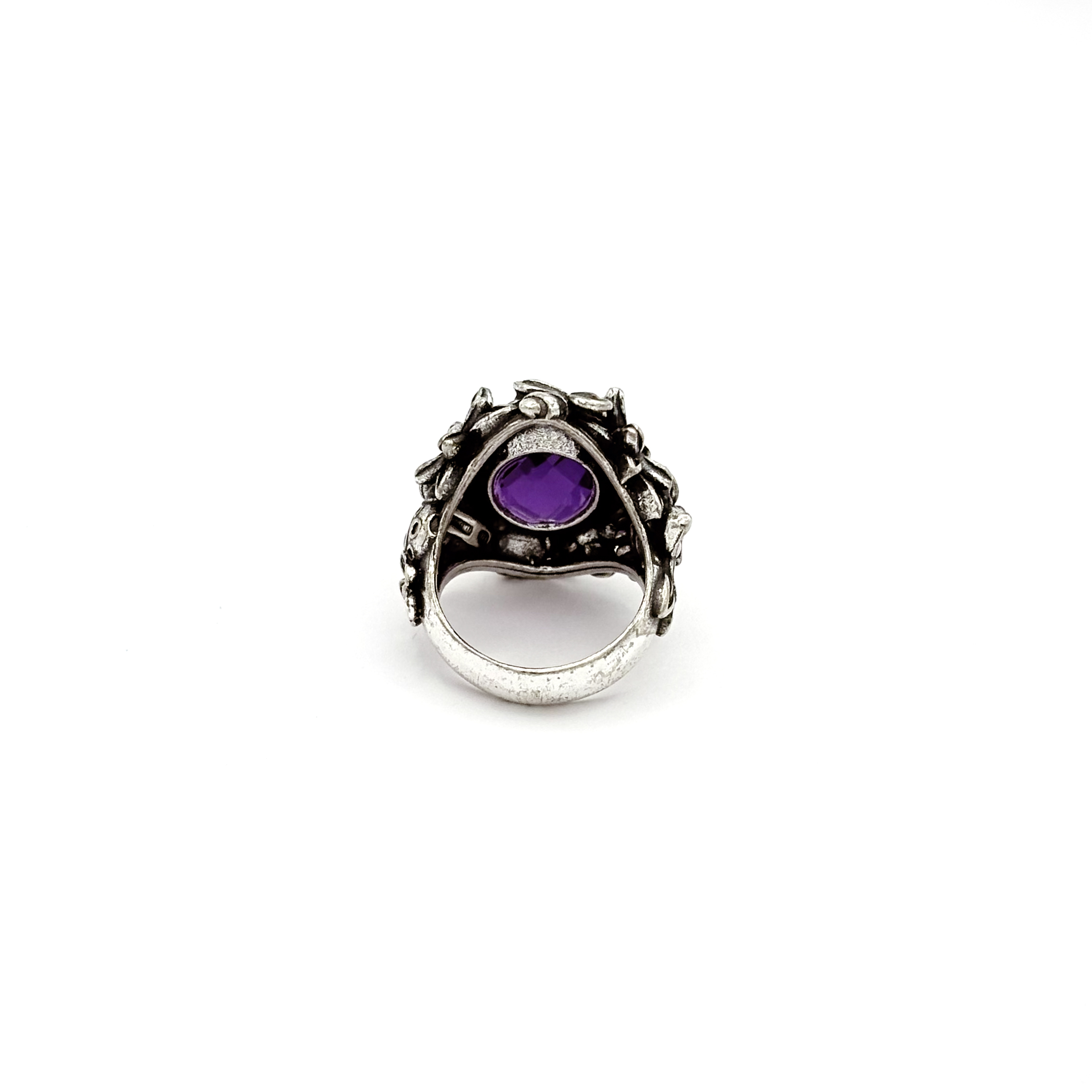 Realizzato in argento 925, con ametista ovale idrotermale. La tonalità viola, intensa ma sofisticata, illumina la mano senza risultare eccessiva.