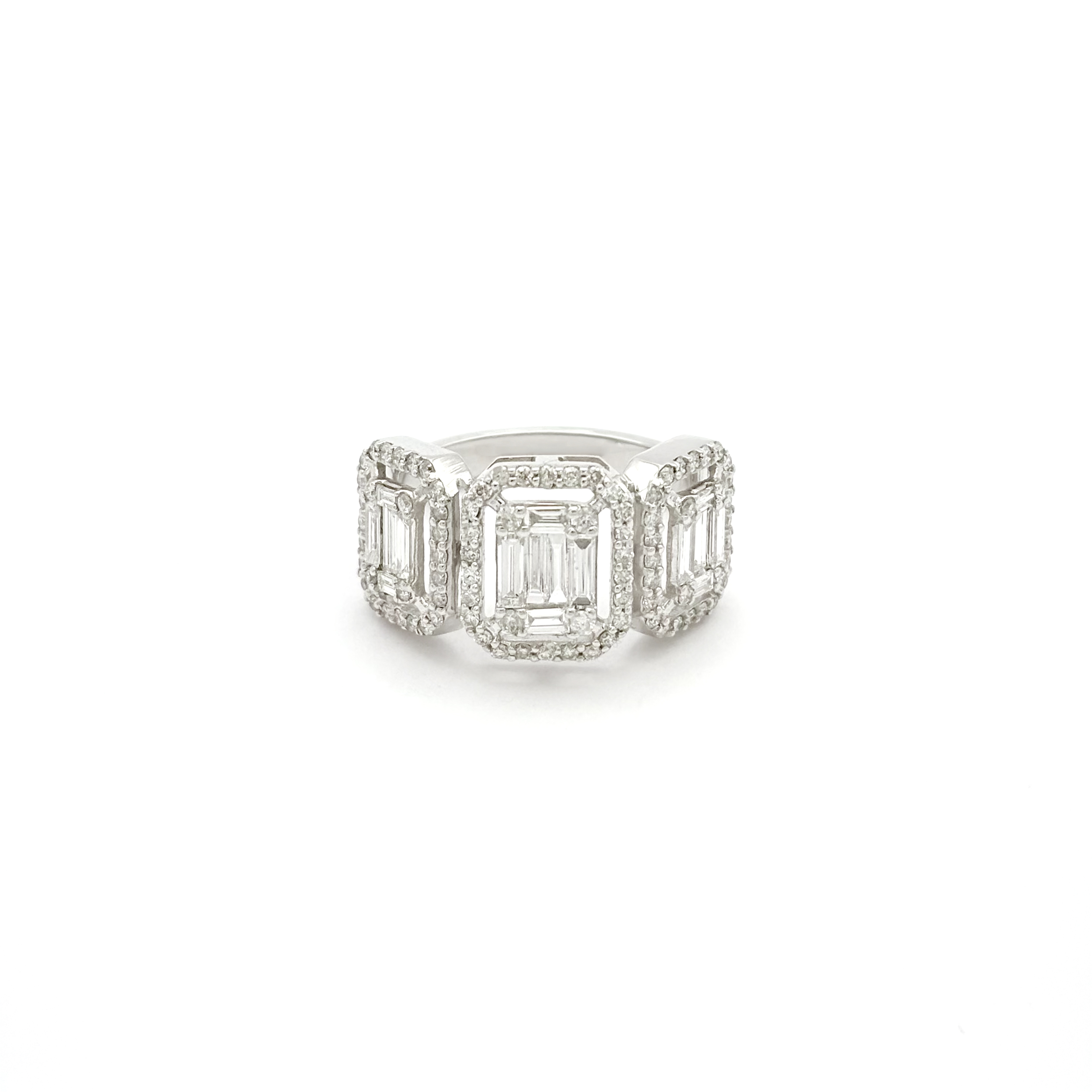 La lavorazione a margherita richiede grande precisione: ogni diamante è incastonato con cura per creare un disegno equilibrato e una luminosità uniforme. L’incastonatura protegge le pietre assicurando al contempo comfort e solidità .