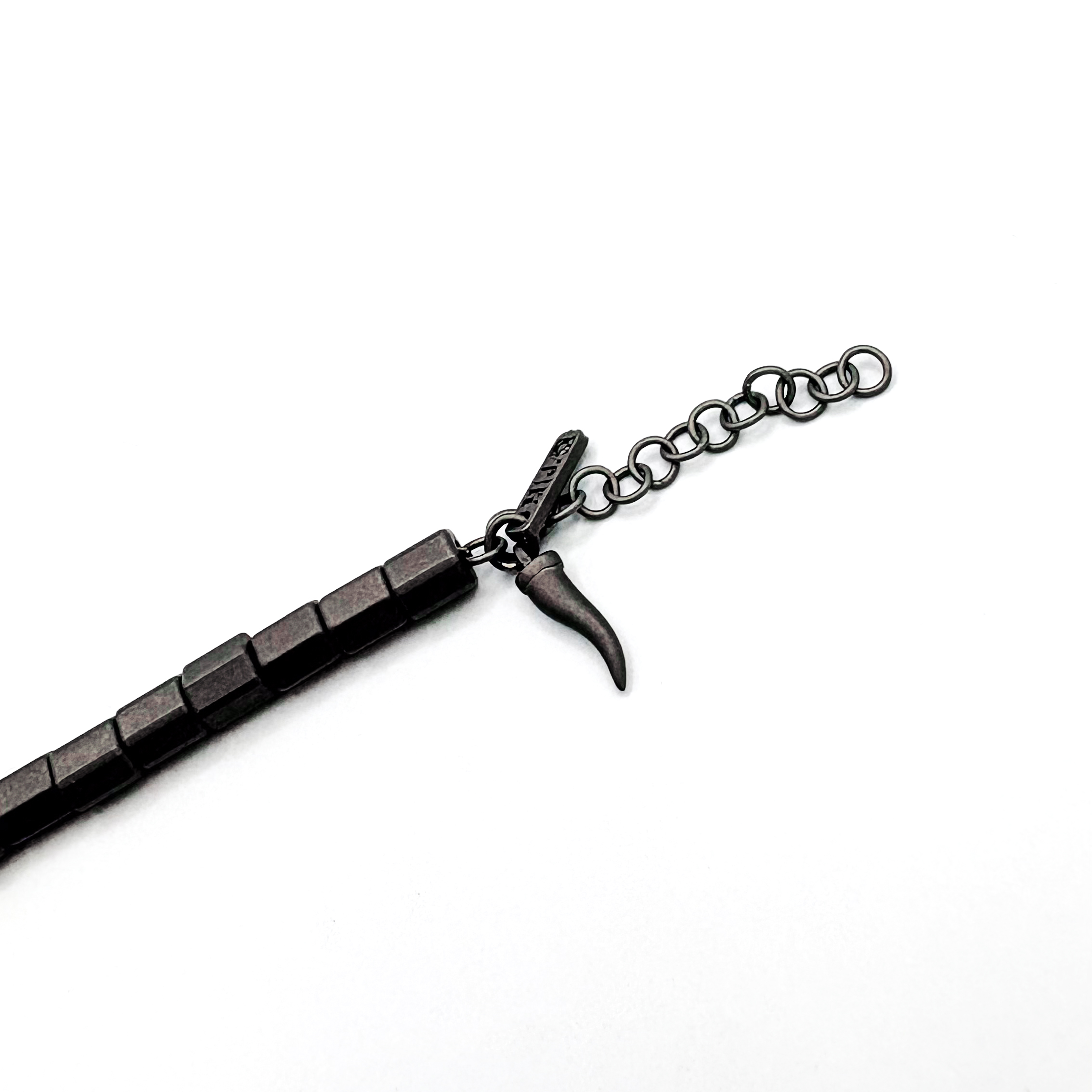 Il punto luce sulla chiusura dona un riflesso raffinato e misurato, mentre il piccolo charm a corno aggiunge un accento simbolico e contemporaneo, mantenendo il design essenziale.