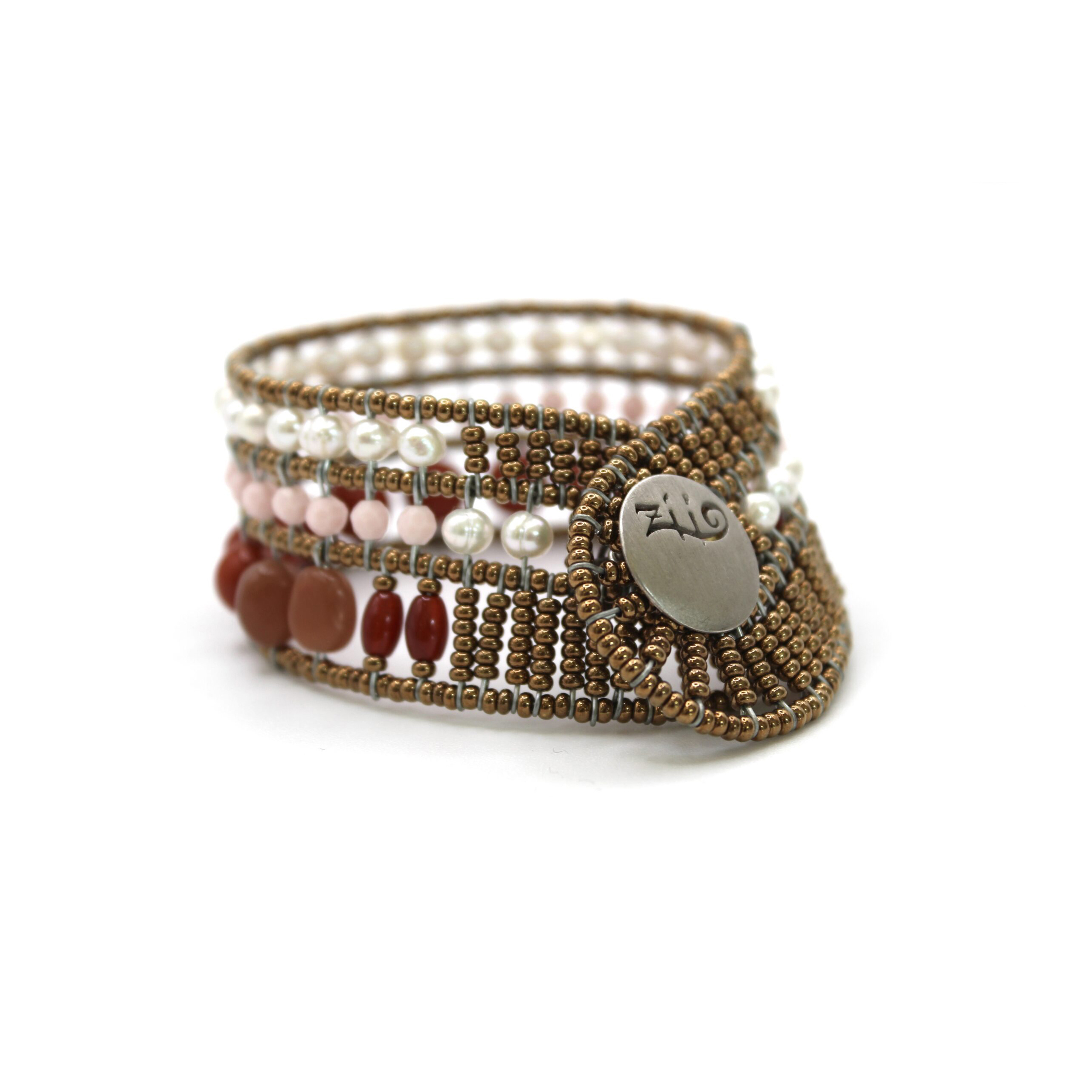 Questo bracciale Ziio nasce dall’incontro tra artigianalità contemporanea e ispirazioni naturali. Il design morbido e fluido accompagna il polso con naturalezza, mentre l’alternanza di pietre e perle crea un ritmo cromatico raffinato e mai eccessivo. È un gioiello pensato per chi ama accessori eleganti ma informali, capaci di adattarsi con disinvoltura a contesti diversi, dal quotidiano alle occasioni più ricercate.