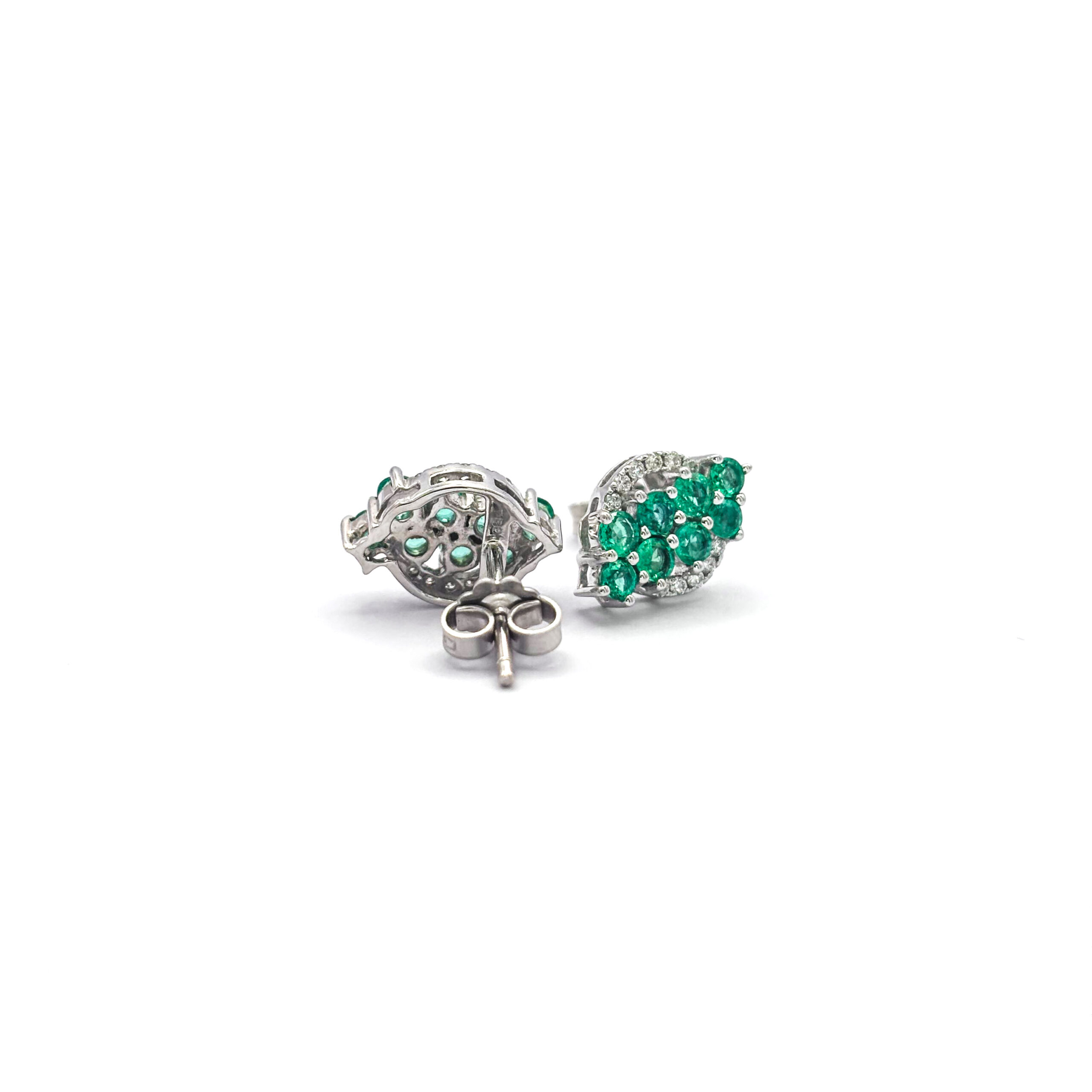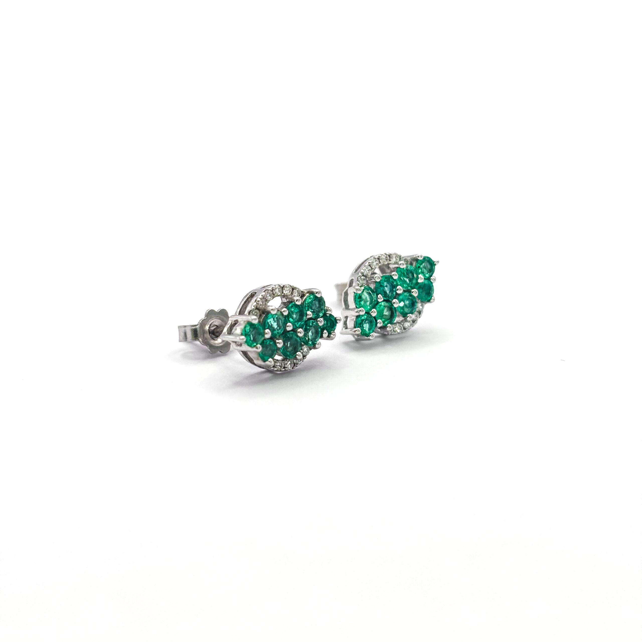 Realizzati in oro bianco 18 carati, montano smeraldi naturali taglio tondo per un totale di 0,80 ct, accompagnati da diamanti naturali taglio brillante per 0,12 ct, colore G e purezza VS.