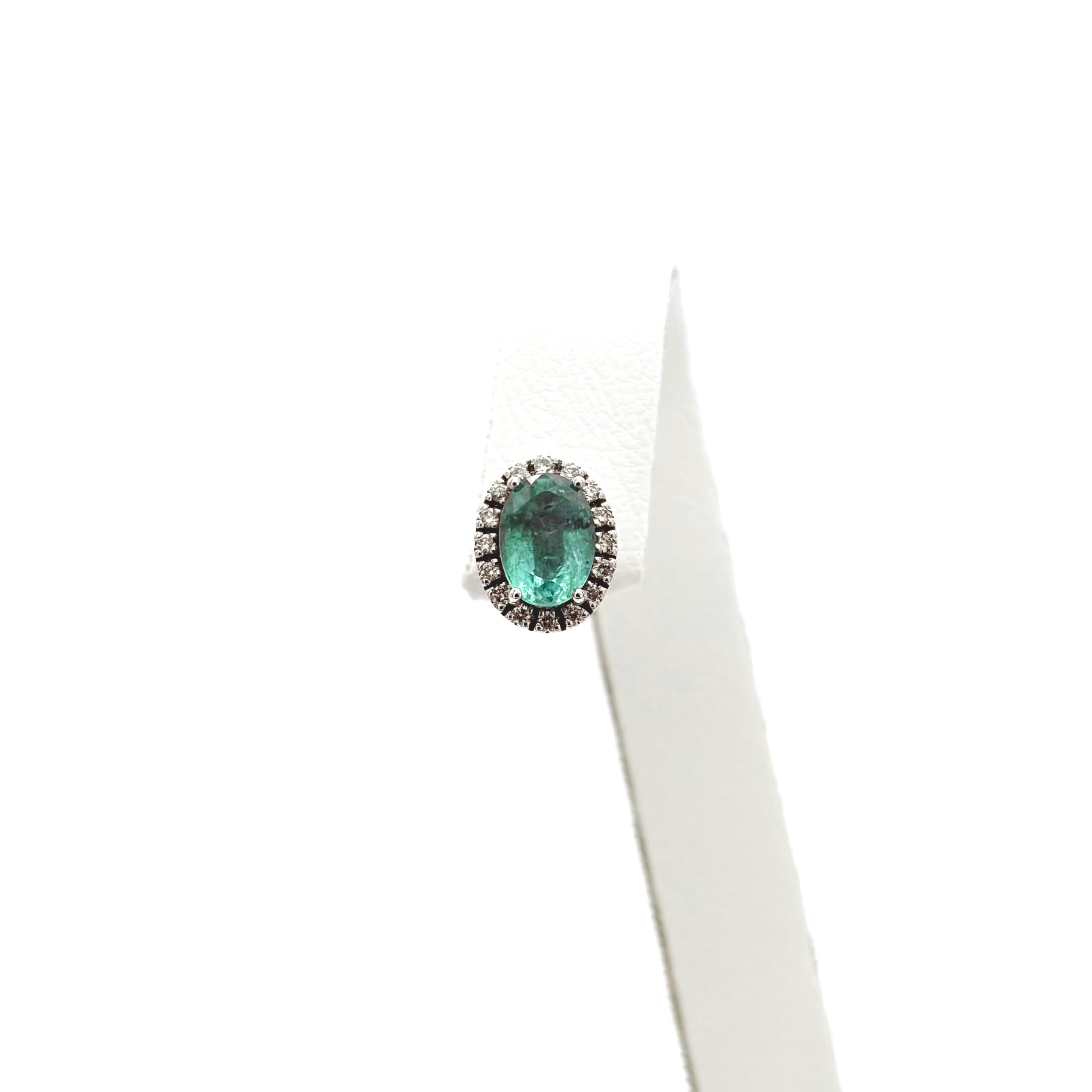 Smeraldi ovali 1,48 ct incorniciati da diamanti: luce pura in oro bianco 18 kt. Un lobo elegante, deciso, impossibile da dimenticare.