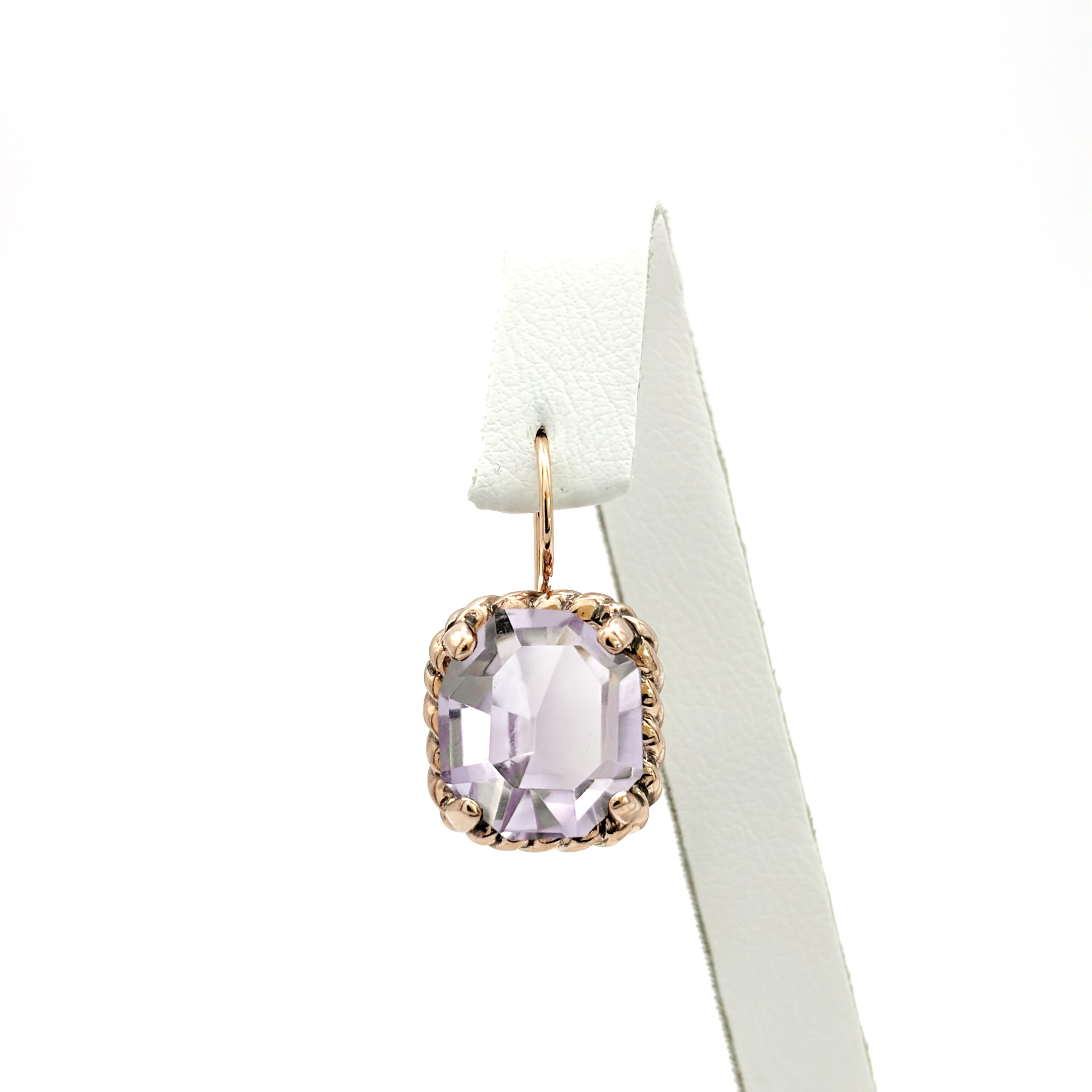 Questi orecchini in oro rosa interpretano la luce con un’eleganza morbida e sofisticata: due pietre importanti, dal taglio sfaccettato, catturano ogni riflesso e lo trasformano in una luminosità delicata, dal carattere contemporaneo ma intriso di gusto artigianale. La tonalità tenue dell’Ametista Rosa di Francia crea un contrasto raffinato con il calore dell’oro, perfetto per chi ama gioielli riconoscibili, ma mai eccessivi.