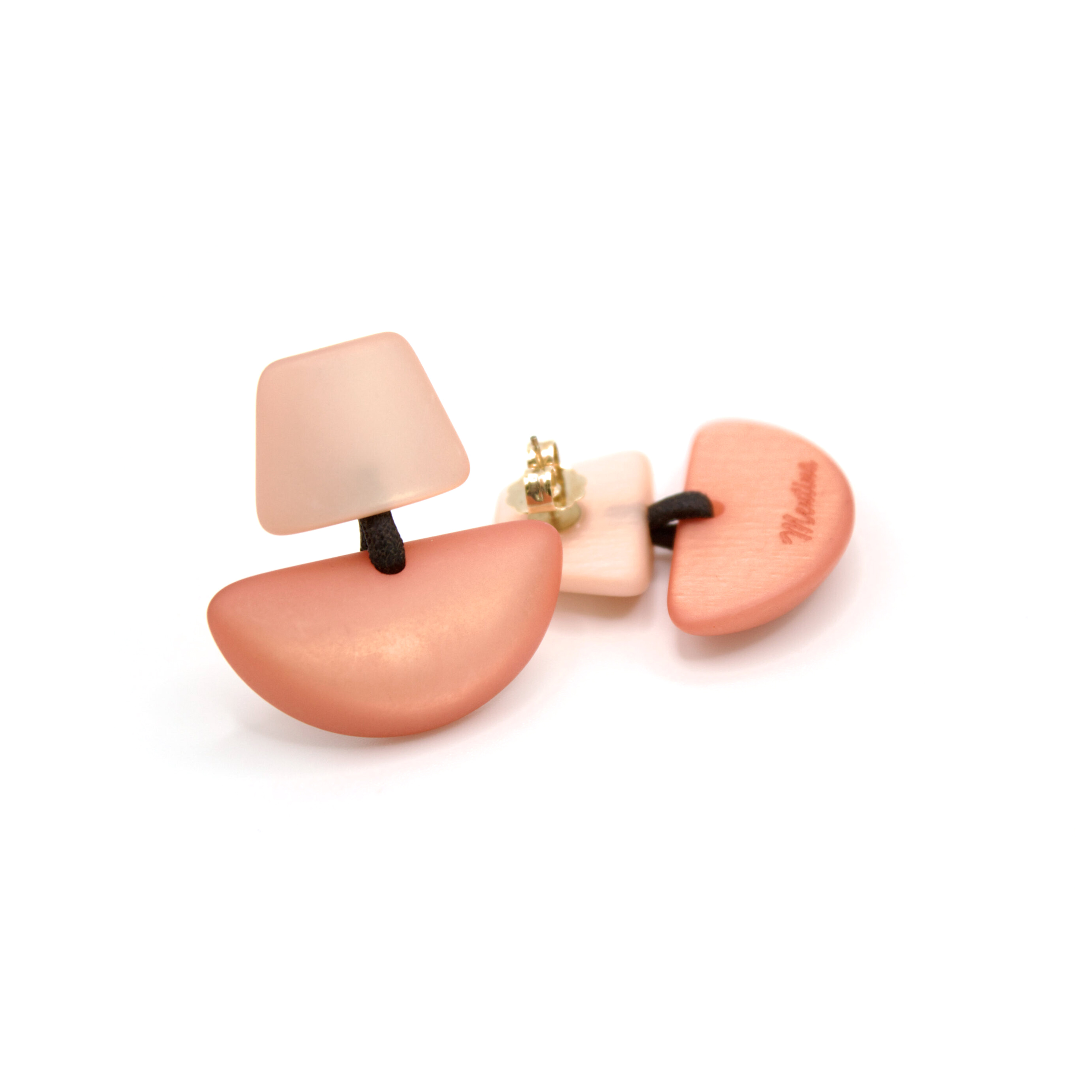Orecchini pendenti firmati Mentina, realizzati in resina e ottone galvanizzato rosa. Un accessorio elegante e contemporaneo, dal carattere femminile e luminoso, ideale per aggiungere un tocco di colore raffinato e originale a ogni look.